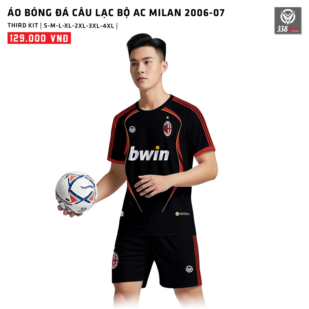 Chiếc áo bóng đá AC Milan mùa giải 2006-07 với thiết kế màu đen huyền bí kết hợp cùng viền đỏ mạnh mẽ là biểu tượng gắn liền với chức vô địch Champions League năm đó. Mỗi đường may, mỗi gam màu đều gợi nhớ đến huyền thoại Kaka, Pirlo, Maldini và những trận cầu đỉnh cao nơi trời Âu.