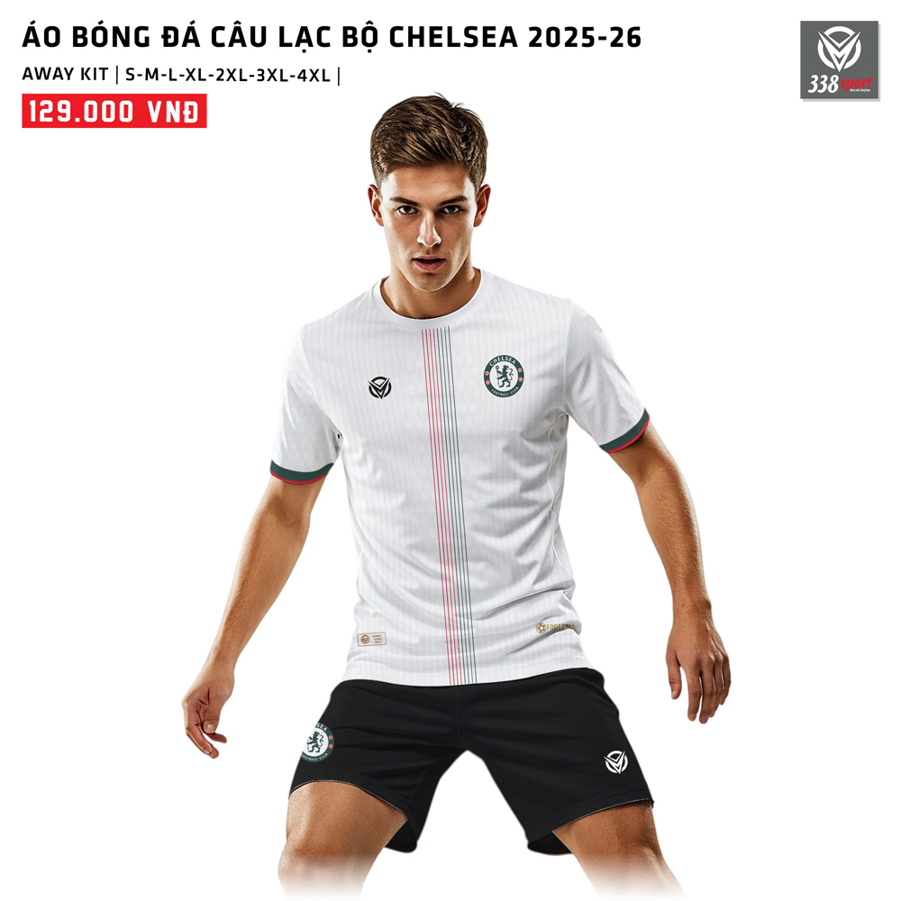 Áo Bóng Đá CLB Chelsea 2025-2026 (Away Kit) nổi bật với thiết kế trắng tinh tế kết hợp dải sọc màu hiện đại, mang đến sự năng động, đẳng cấp và dễ phối đồ cho mọi tín đồ bóng đá.