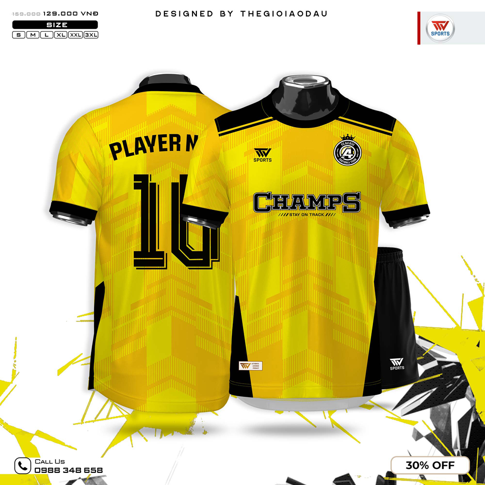 Áo bóng đá màu vàng đen CHAMPS năng động, thể thao hiện đại