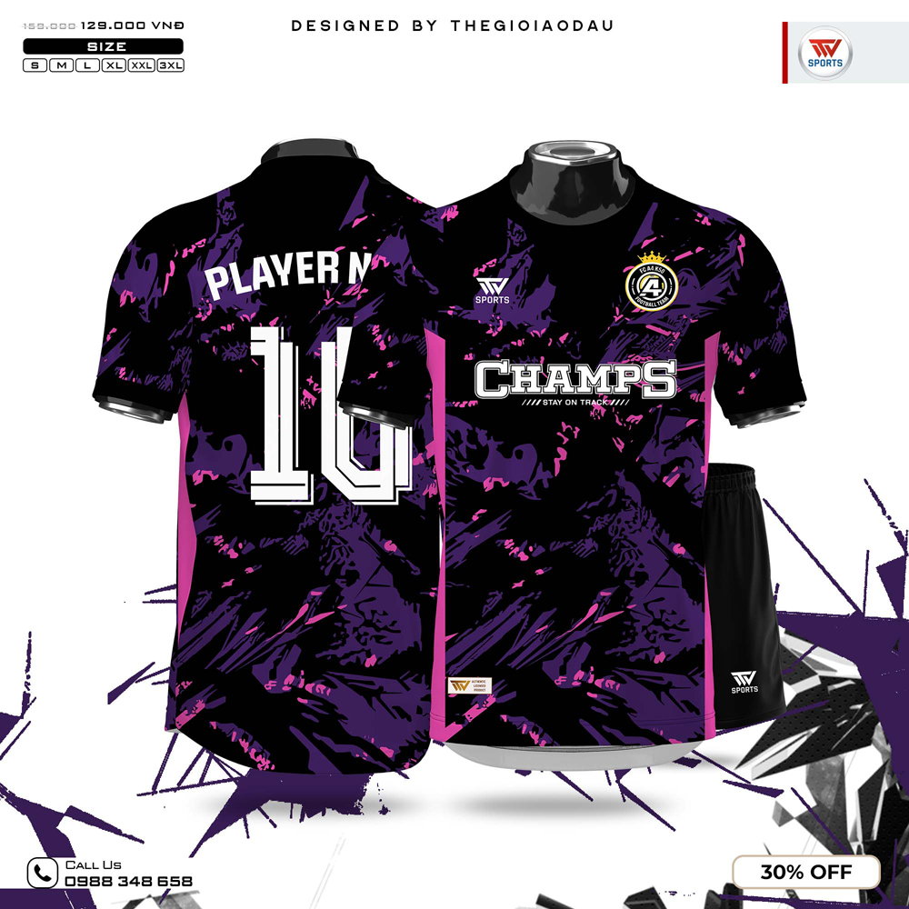 Chiếc áo thể thao này nổi bật với sự kết hợp màu sắc đầy sáng tạo: Đen – Tím – Hồng Neon. Gam màu đen tạo sự mạnh mẽ, cá tính và có phần sang trọng. Màu tím đậm mang vẻ tươi mới hiện đại, trong khi hồng neon là điểm nhấn táo bạo nhưng trẻ trung, năng động, giúp người mặc thu hút ánh nhìn ở mọi sân chơi.